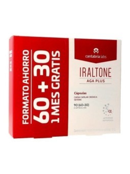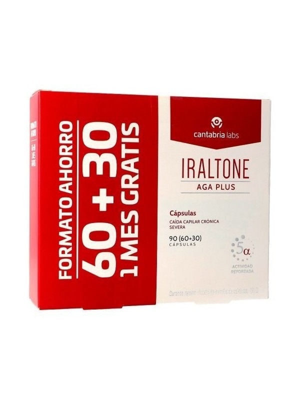 Iraltone aga plus es un complemento alimenticio en formato de cápsulas que contribuye a reducir la caída capilar crónica severa con un componente hormonal, así como a la recuperación de la densidad capilar.